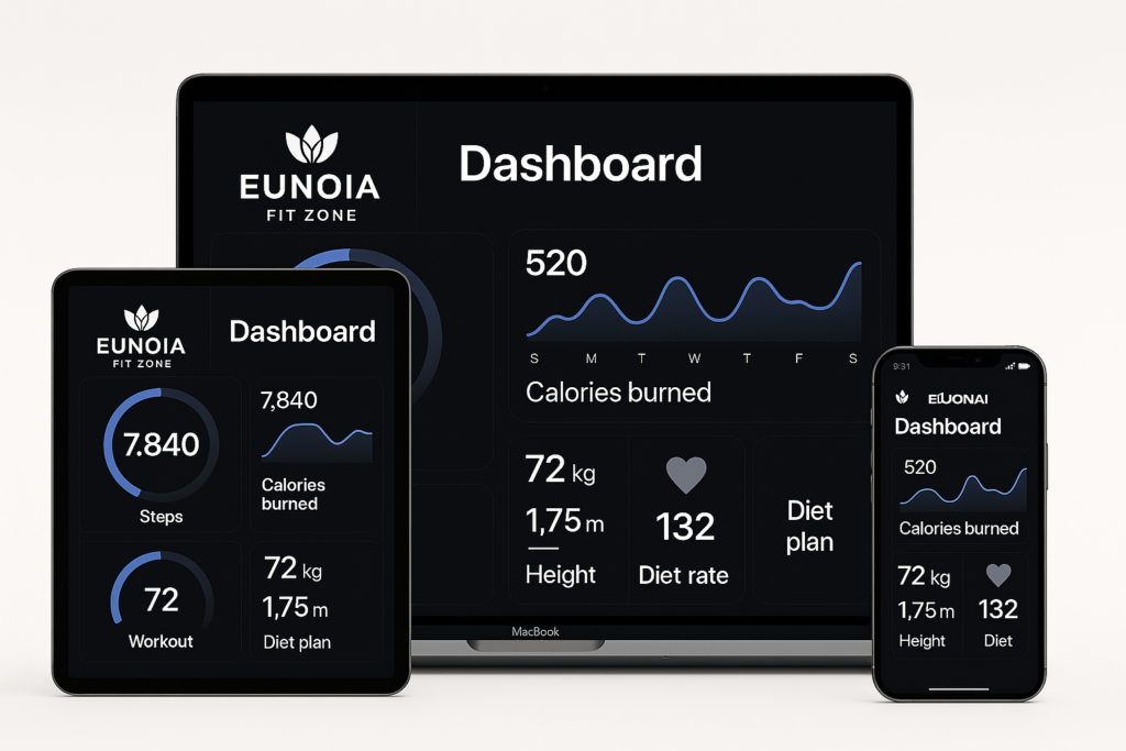 Eunoia Fit Zone brings everything together — progress tracking, weight, BMI, body measurements, performance metrics, and more — all in one clean, intuitive platform designed to grow with you.